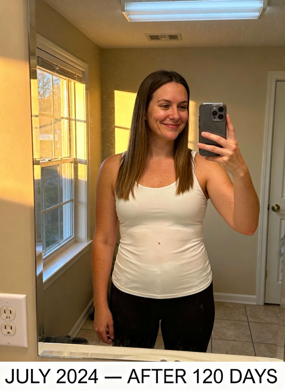 When I started, I was constantly bloated, stressed and felt like my body was stuck in ‘cortisol mode’. In just about 3.5 months I’ve lost around 17.6 lbs - 19.8 lbs, especially around my belly, and my whole body looks and feels less puffy. My clothes fit better, my energy is more stable and I finally recognize myself again in the mirror. I’m so grateful I gave this a try.